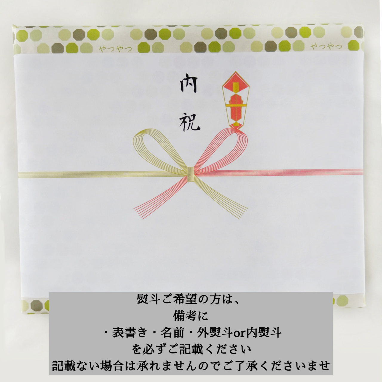 ※熨斗をご希望のかたは備考に・用途(水引き)・表書き・名前・外熨斗or内熨斗 を必ずご記載ください。記載ない場合は承れませんのでご了承くださいませ。